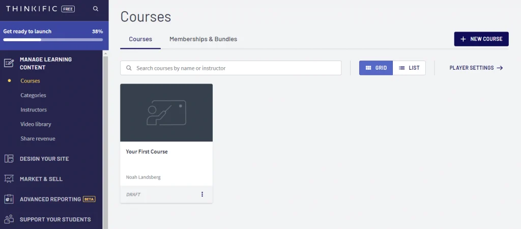While having a visually appealing and user-friendly website is crucial to promoting your courses, the courses themselves should take center stage. Thinkific excels in this area.