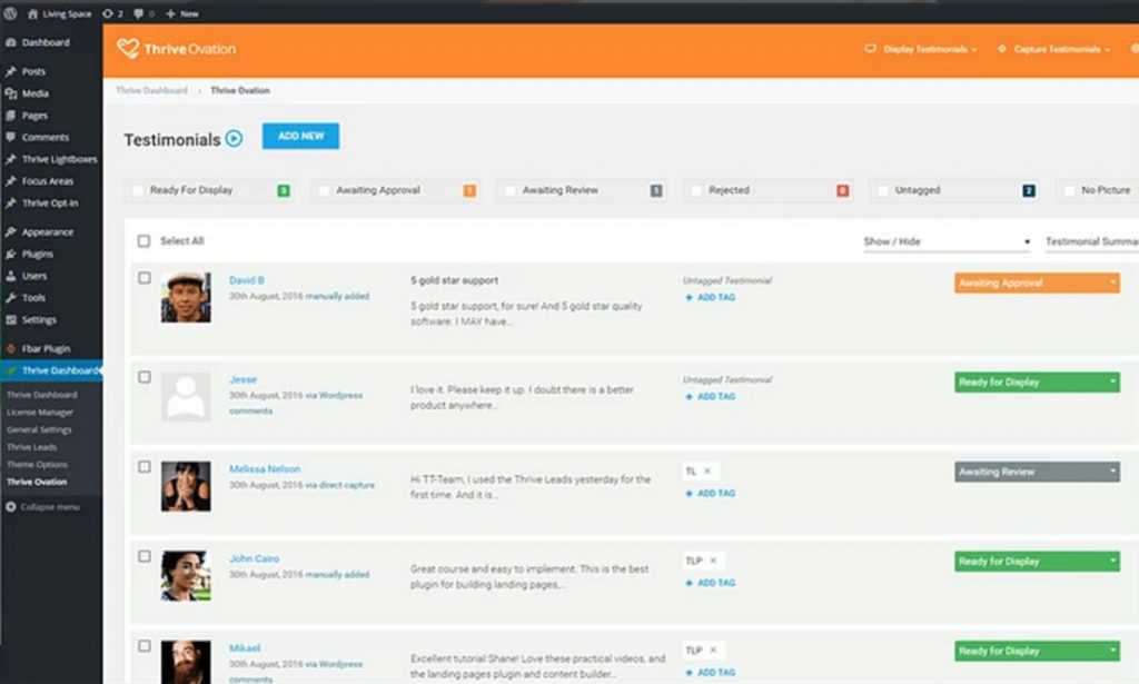 This plugin is useful for managing customer testimonials. This will support a collection of treasured social proof for your products. This testimonial is easy to collect and pin on any landing page. Thrive Ovation also supports the Capture Widget to capture your customer feedback.