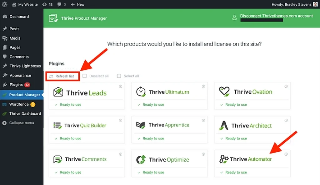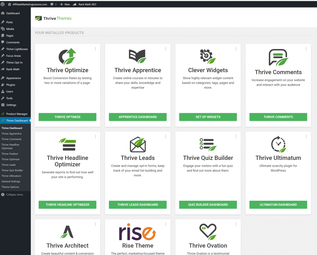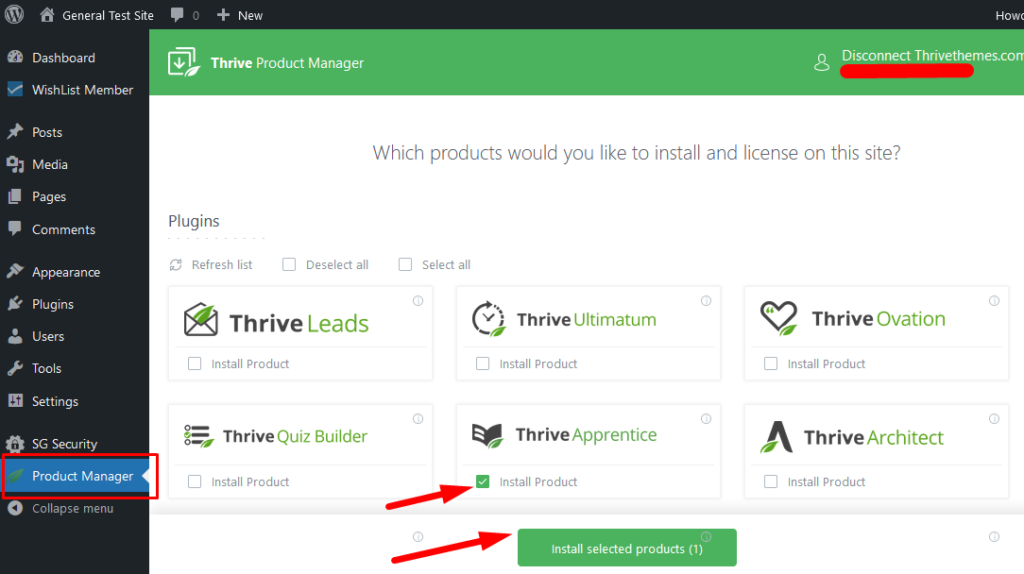 2. Install product manager, and you will get into the main dashboard of Thrive Themes products. Chooses any of the products according to your business and needs.