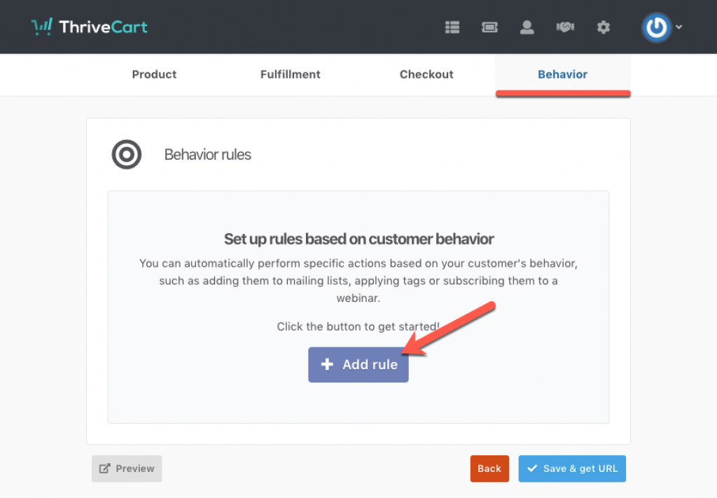 Behavior: The last tab in the creation of your first product is Behaviour rules. This will support you to provide your customer with automated messages of some actions like the product is purchase message. This also helps to provide with webinar directing button, tagging the customer in some emails, and more.