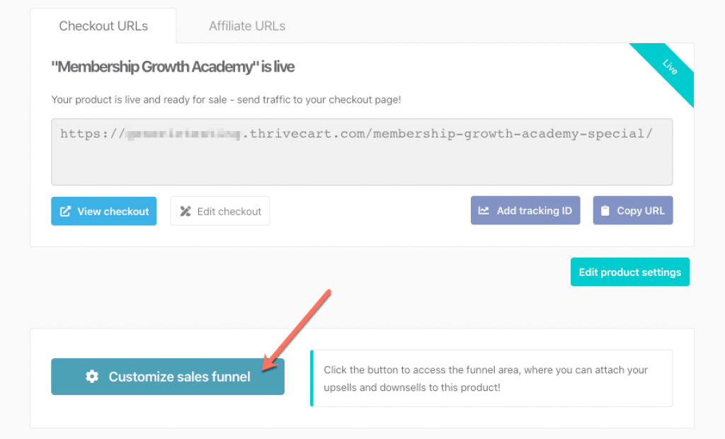 - Save your new product setup. You will get another page with an option to customize the sales funnel. The option to create a funnel set-up is directly through the product list.