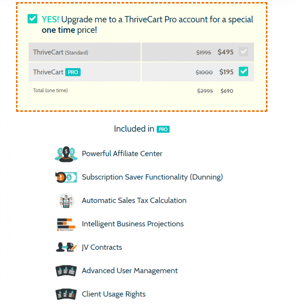 As mentioned earlier, Thrivecart offers a one-time payment service for a lifetime in their Standard and Pro categories. You will get all the features updated promptly in this lifetime opportunity. The standard lifetime one-pay offer will cost you around $495, and the PRO lifetime one-pay offer will cost you around $690.