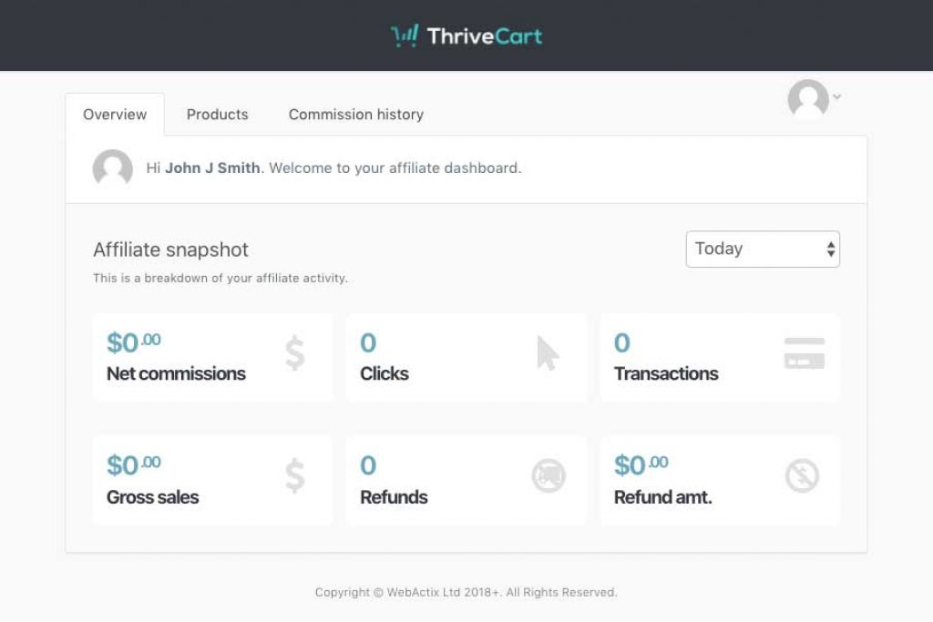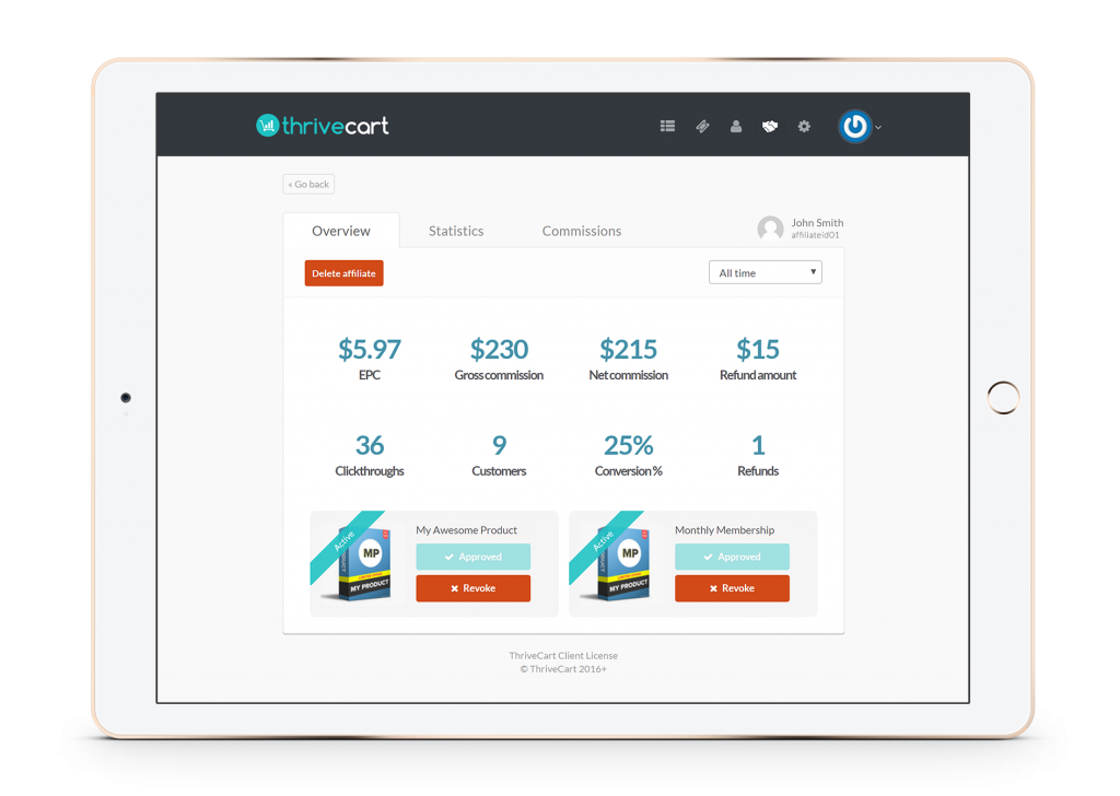 - Affiliate program option: Thrivecart is available with an inbuilt affiliate center. You can manage it by tracking the development, creating connections, designing guidelines, representing affiliates, and more.