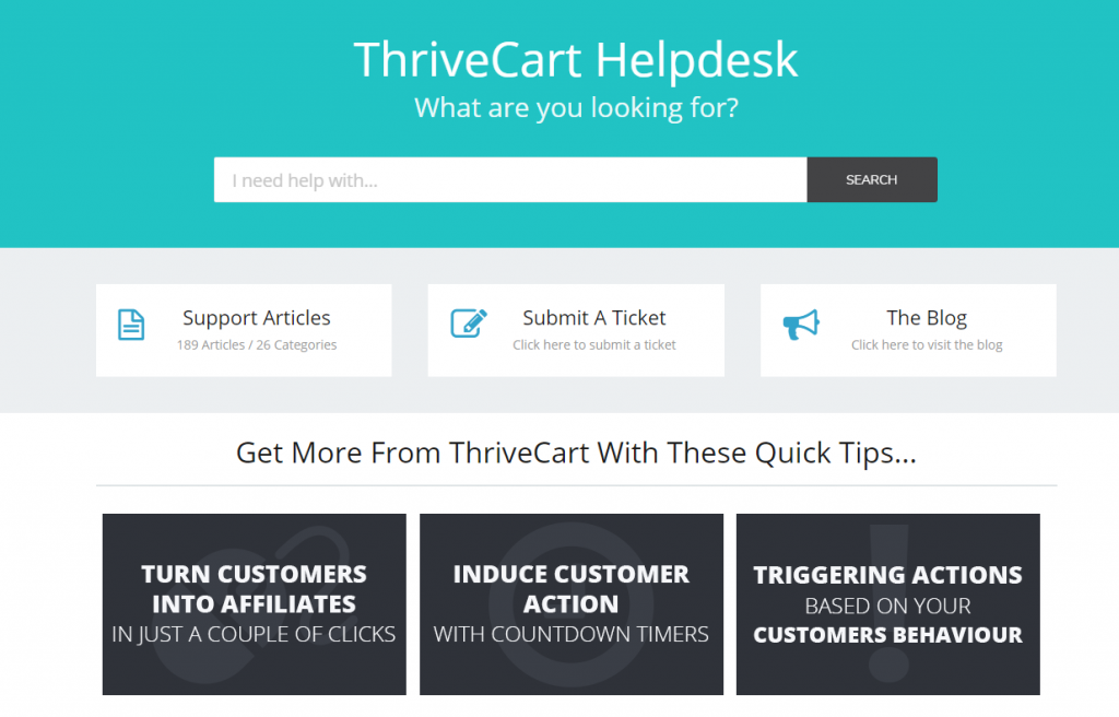 The Customer help desk of Thrivecart has varied blogs that will support you in navigating through this site with better output. If you are a first-time user, I recommend you go through 138+ articles in 23 categories. It will resolve all the queries and ease you to work on this platform by applying all the available knacks.