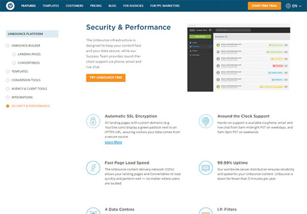 Unbounce makes their users and visitors safe not only through SSL encryption but also through other security as follows: