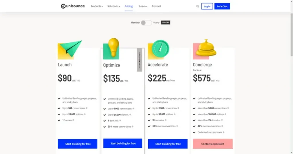 Unbounce sets a price for its service in four different plans, which are as follows:
