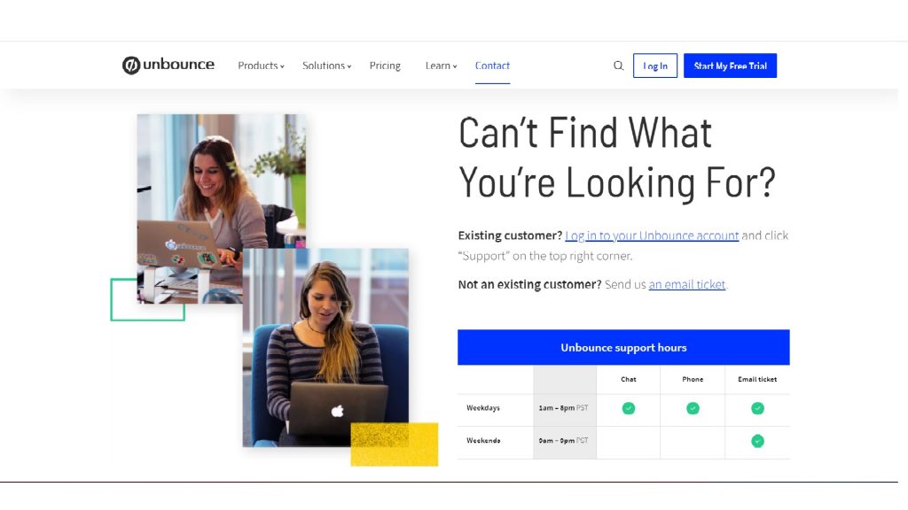 Unbounce Community is also one of the options to get picture-perfect solutions for your queries. It also supports its users with live chats and calls. However, live support is obtainable on Weekdays from 1 am to 8 pm and on Weekends from 9 am to 9 pm.