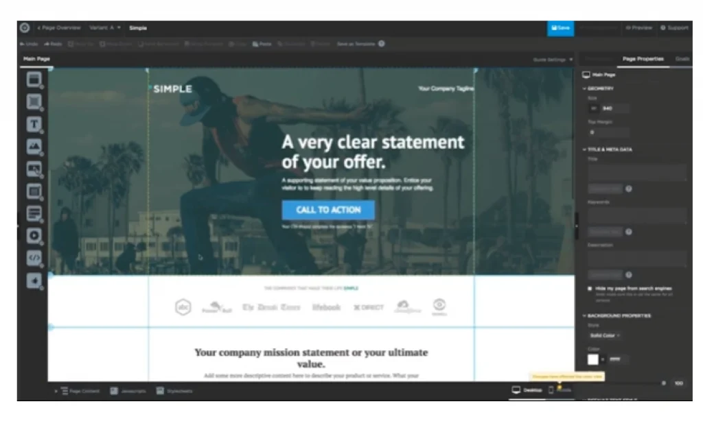 The Landing Page Builder tool in Unbounce is incredibly powerful because it permits the addition of alt descriptions and metadata and adjusts any transparency in the landing pages.